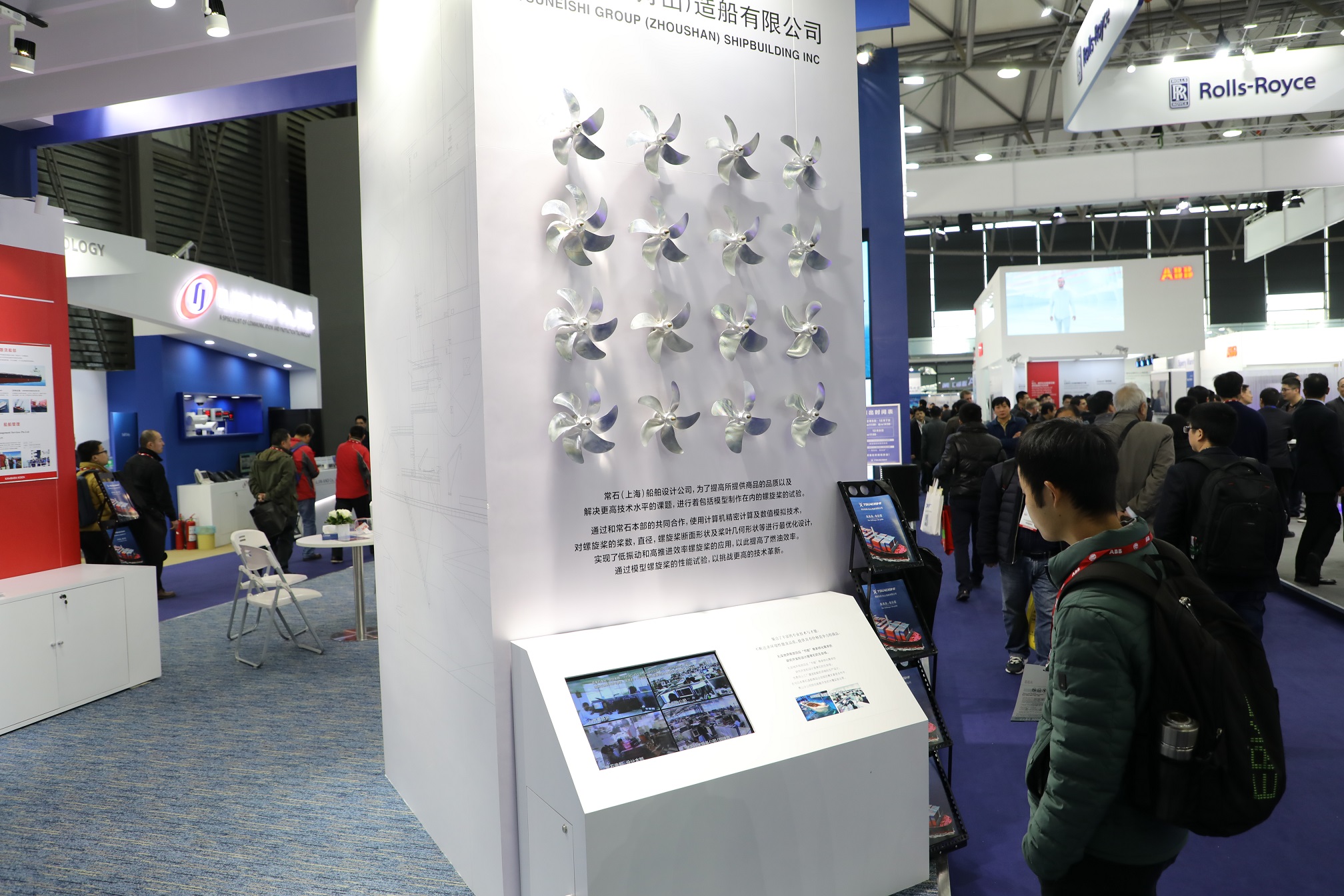 公司在展區(qū)內(nèi)使用大型顯示屏播放新船型的宣傳視頻,展示了船舶模型及16種螺旋槳模型等多種產(chǎn)品。此外,還以演示的方式,介紹了經(jīng)營活動的現(xiàn)狀和展望,以及與地區(qū)合作的情況。常石集團(tuán)旗下的常石鐵工、常石商事、和開展海運(yùn)業(yè)務(wù)的神原汽船也在會展上設(shè)置了展區(qū),通過宣傳常石集團(tuán)的事業(yè)內(nèi)容,提升了集團(tuán)形象。