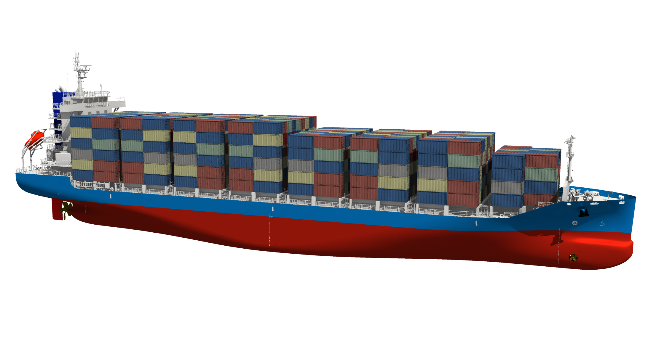 常石造船的1,091 TEU型集裝箱船是為中日之間的支線運輸而優(yōu)化的新船型。通過采用獨有的節(jié)能減排技術(shù)(例如、低阻力船體形狀、節(jié)能設備MT-FAST等),與原1,020TEU型相比,燃油效率得到了極大的提高。環(huán)保性能也得到了加強,在滿足溫室氣體排放國際規(guī)則第三階段EEDI指標,安裝有壓載水處理系統(tǒng)的同時,為應對突發(fā)的海上事故而對燃油艙采用雙殼化處理,以防止漏油造成海洋污染等。此外,在保持船舶總噸小于1萬的前提下,通過對貨艙和舾裝件的優(yōu)化布置,最大裝載量與1,020TEU型相比增加了71TEU(20FT當量),達到同型船最大的1,091TEU。